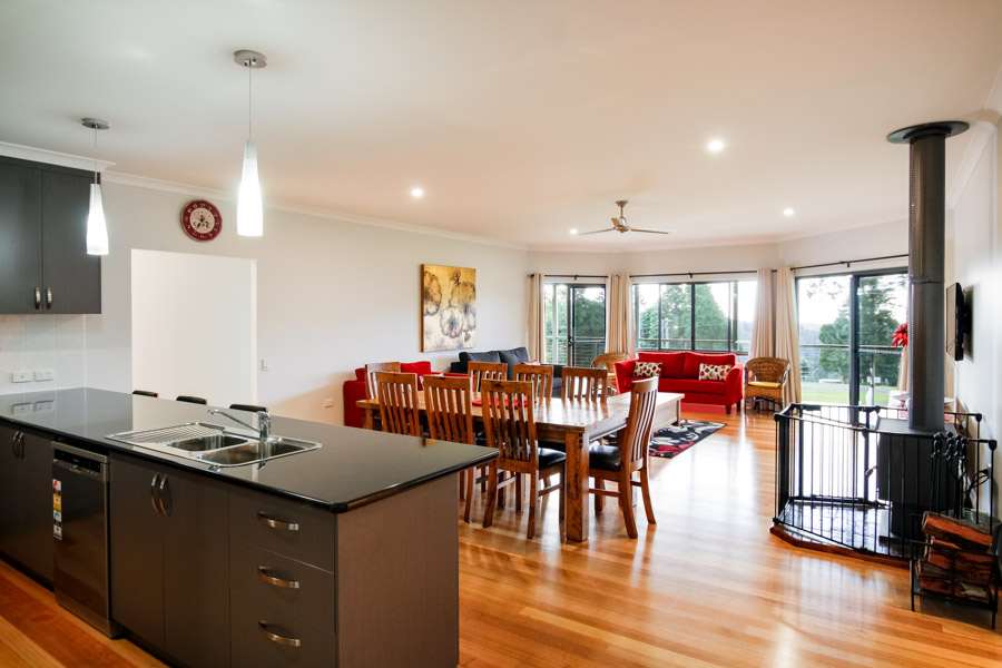 We had 3 nights for our annual family Christmas in July celebrations. We normally stay in the big cabins but only had a small number able to make it this year so chose Clear View instead. Although the atmosphere was not the same as in the cabins, the house was really lovely and we really liked the set up of the bedrooms/bathrooms. There was plenty of room for everyone, the verandah is great, the views were lovely and the house was toasty warm once the fire was going. We were a bit concerned about being so close to the main road but it wasn't a problem. It is a pity that people feed the birds because we had a persistent kookaburra which made it difficult to take full advantage of the verandah as it kept swooping and trying to steal food which was a bit frightening at times. On the upside of that though, I was able to get some fantastic photos of it because it was so quiet. We had a great time and would book this house again.