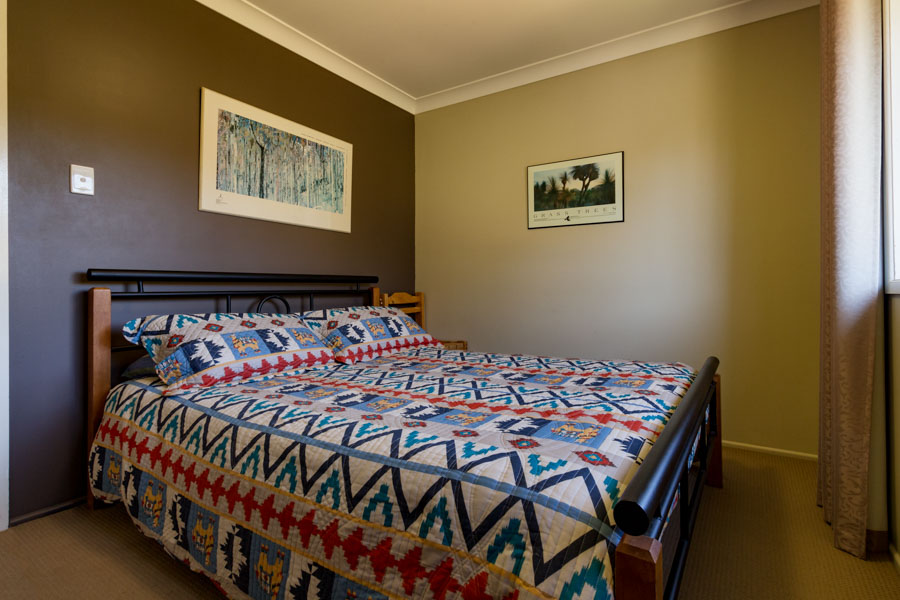 Beautiful views. Wonderful and spacious deck for shade/sun on 3 sides and for outdoor eating. Quite cool on a very hot day. Bed reasonably comfortable. Comfortable lounges. Good facilities. We would stay there in the future. Ceiling fans would be useful to ease the need for air-conditioning.