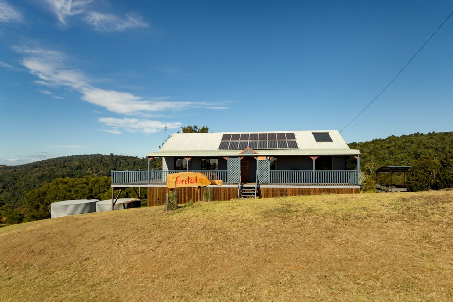 We booked 3 nights at Firetail and had to stay just one more night! The house is situated near the end of the Estate on the range overlooking the valley on one side and the bush on the other side. The house was very well appointed with thoughtful inclusions like USB sockets and extra leads and power boards. (There never seems to be enough) The bed was very comfortable and there was nothing that we thought was left out for our comfort. TV and phone reception were fantastic. We had a lovely variety of birds visiting each day on the back verandah. From little Blue Wrens, Firetails, Cockatoos, King Parrots, Rosellas, Kookaburras, Bower birds, Currawongs, Crows and even Bush Turkeys. It is a great house to get away from it all and do nothing, or have some good walks amongst the Estate. It was fun to visit there during Bunya nut season too. We like to visit in every season and summer has it's very own appeal.