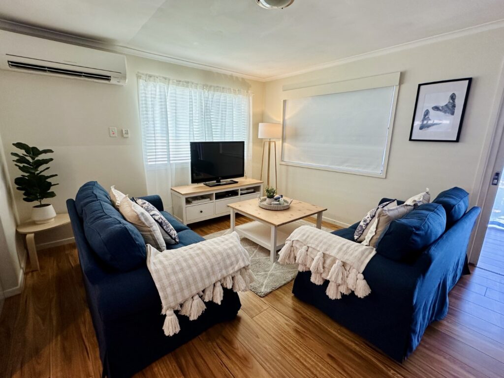 - Relax and unwind in comfort by the log fire and reverse cycle air conditioning.