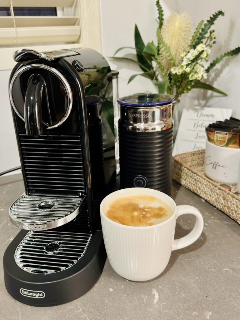- Nespresso Coffee machine BYO Nespresso pods.