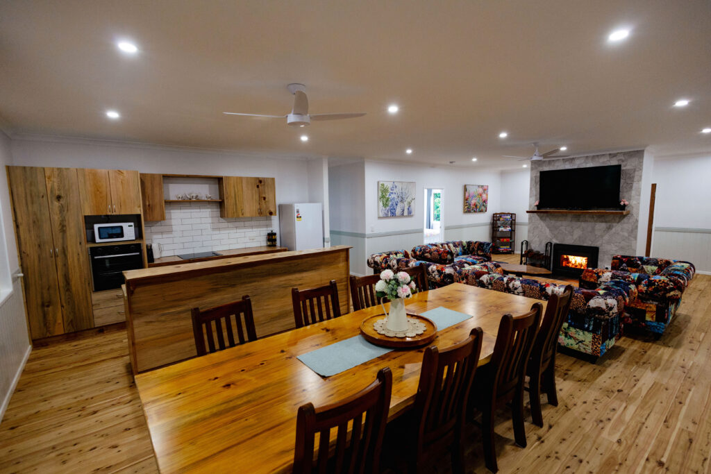 A group of eight great friends stayed for two nights at three properties at 1 Bunya Avenue in early June 2025. Rose Robin truly exceeded our expectations in every way. It was spacious, comfortable, warm and so well-designed. We loved the huge Queen bedrooms, each with a skylight above the bed for star-gazing, and each with a large ensuite. One ensuite was disability-compliant so it was convenient and very safe for one of our group to use. Two others in our group also had mobility concerns but the other ensuited bedrooms were very suitable for them as well. There are no stairs either indoors or outdoors, and so much space indoors so use of wheelie walkers was a breeze! The kitchen is fully-equipped with everything we needed. The lounges in the beautiful fireside area are perfectly designed for relaxing togetherness. The Bunyas accommodation team were incredibly helpful and friendly in the planning stages of our visit. It seemed that nothing was a trouble to them. Thank you Team! We all felt sorrowful, but so relaxed, when the time came to leave. But we plan to return to Rose Robin again next year. Thank you for a memorable visit to such a beautiful place.