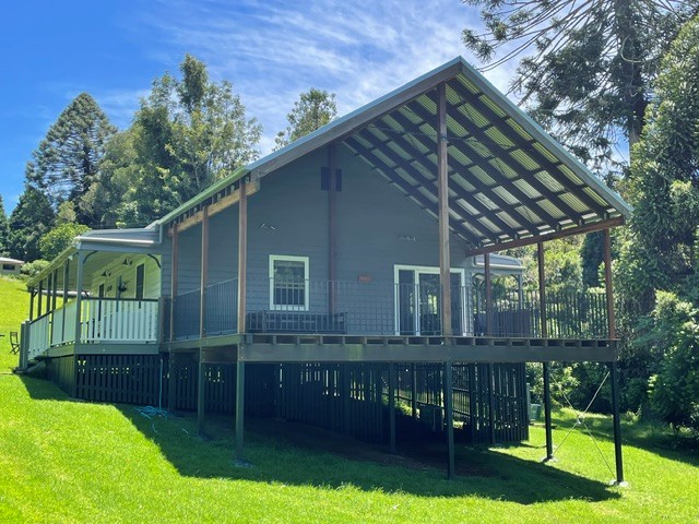 - Elevated home on a large, open block, Webber BBQ. Expansive deck overlooking grounds and rainforest.